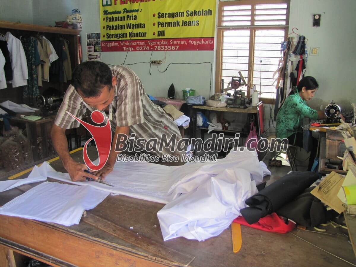 Modal Keterampilan, Iswanto Sukses Usaha Jahit BisaMandiri 28/08/2015 Iswanto Mencocokkan Pola Jahit dengan Kain Proses Jahit Celana Proses Pemotongan Sesuai Pola Proses Potong Kain Wawancara Iswanto dengan Bisa Mandiri